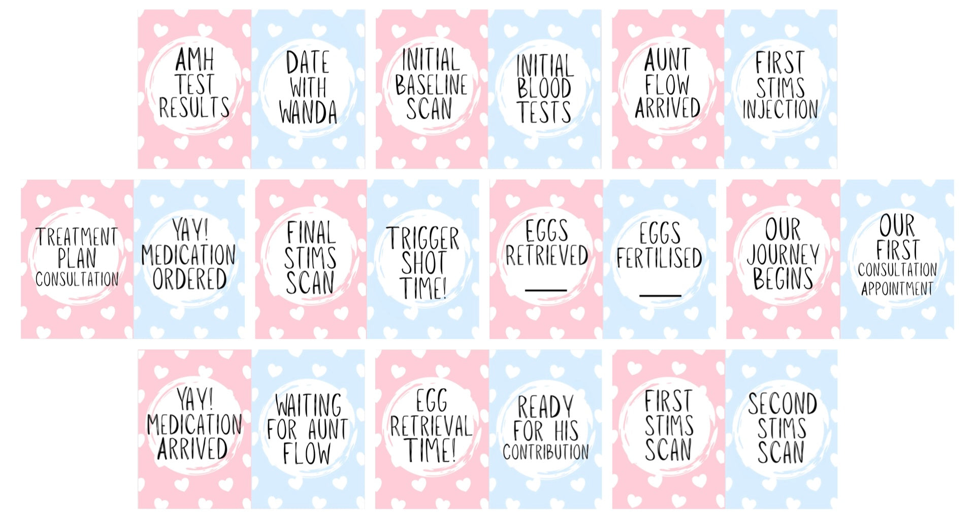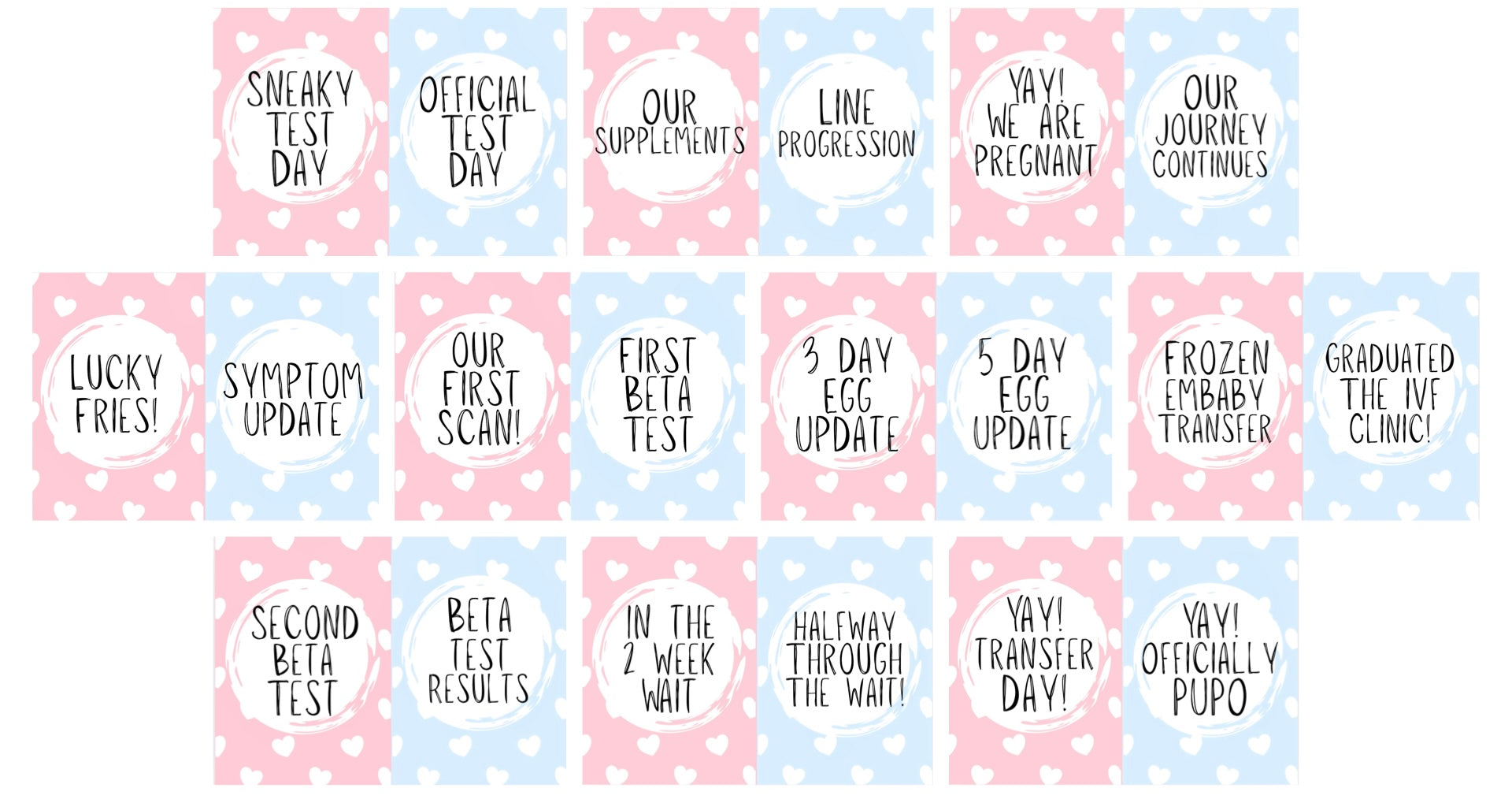 Pink and Blue IVF Milestone Cards